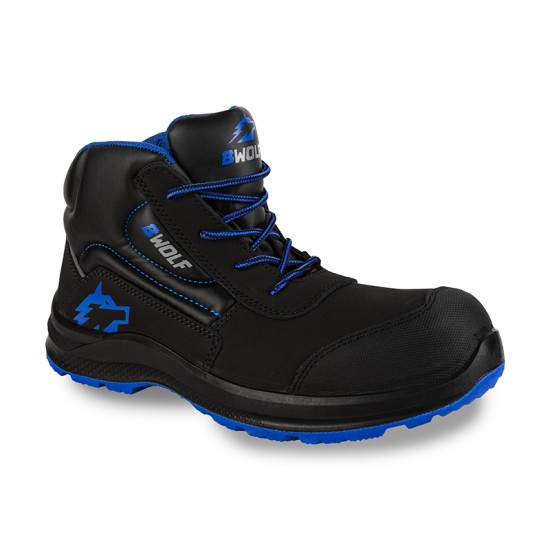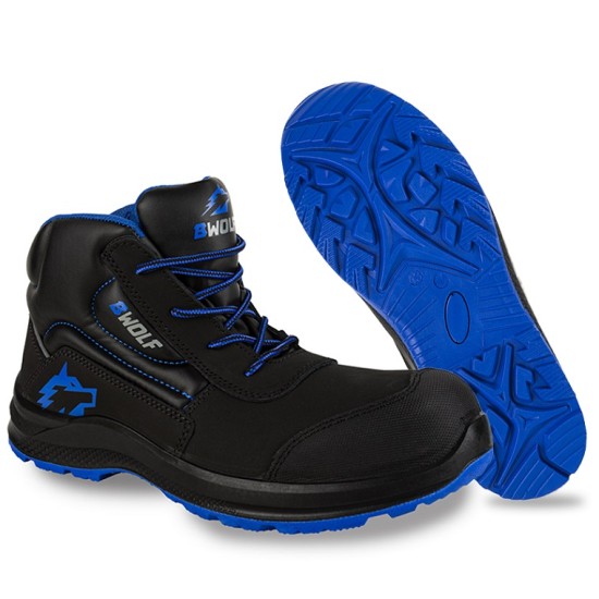 Bocanci de protectie S3, din piele bovina hidrofuga, cu bombeu din compozit si lamela antiperforatie din kevlar. Talpa comoda poliuretan, antialunecare SRC (SRA+SRB), albastra.