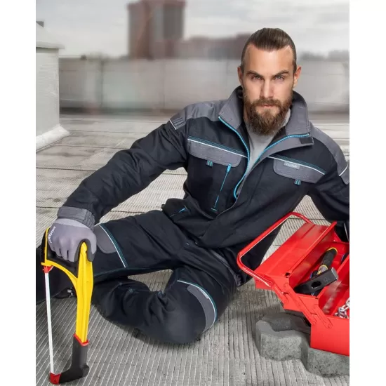 Jacheta de lucru bumbac Cool Trend negru-gri. Formeaza costum de lucru impreuna cu pantalonii Cool Trend negru-gri sau salopeta cu pieptar Cool Trend.