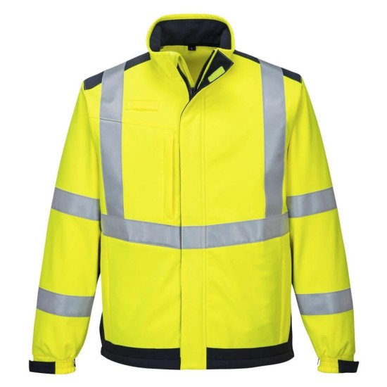 Jacheta SoftShell Modaflame Multi Norm Arc este confectionata dintr-o tesatura de inalta protectie din 3 straturi softshell. Folosind elemente din fibra de carbon si modacrilic, acest softshell ofera protectie impotriva flacarii, protectie chimica, antistatica si de vizibilitate ridicata. Un fermoar interactiv permite ca acest softshell sa fie incorporat intr-o jacheta exterioara pentru izolare suplimentara, daca este necesar.