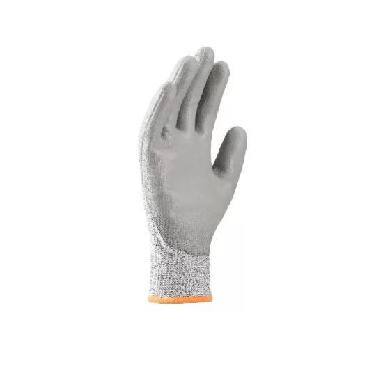 Mănuși protecție anti-tăiere nivel C, conform standardului EN 388:2016 – 4542C. Fabricate din poliester combinat cu fibră anti-tăiere, cu o îmersiune PU pe palmă, au grosimea de 1,1 mm (± 0,2 mm) și garantează aderență și durabilitate in medii de lucru uscate și în medii cu umiditate moderată.